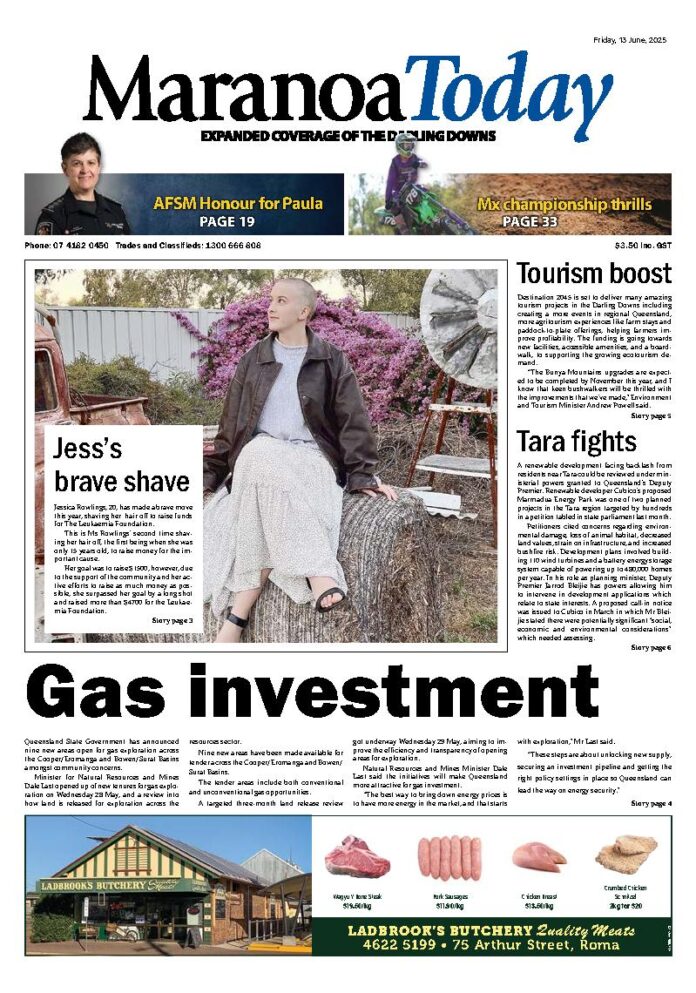 Maranoa Today – 13th June 2025 Subscribe or Login to see the rest of the content. Username Password * Remember Me Forgot Password News St George stun Roma in the Knox Shield 05/12/2025 St George have pulled off a spirited upset against Roma on Sunday, claiming a tense two-wicket win in the final round of the Knox... Roma the marketplace of choice 05/12/2025 This week’s sale marked the third last sale of 2025, and it continued to solidify the Roma Saleyards as being the marketplace of choice... Morgan’s bone cancer battle 04/12/2025 Morgan Janke dreams of being the next Reece Walsh and playing for the Brisbane Broncos one day. The seven-year-old Dalby boy used to spend every...