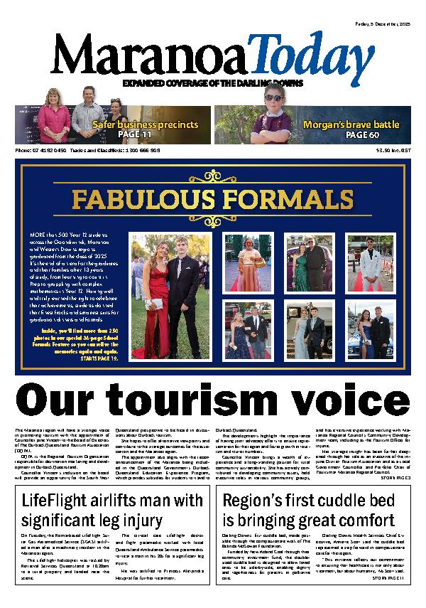Maranoa Today – 5th December 2025 Subscribe or Login to see the rest of the content. Username Password * Remember Me Forgot Password News St George stun Roma in the Knox Shield 05/12/2025 St George have pulled off a spirited upset against Roma on Sunday, claiming a tense two-wicket win in the final round of the Knox... Roma the marketplace of choice 05/12/2025 This week’s sale marked the third last sale of 2025, and it continued to solidify the Roma Saleyards as being the marketplace of choice... Morgan’s bone cancer battle 04/12/2025 Morgan Janke dreams of being the next Reece Walsh and playing for the Brisbane Broncos one day. The seven-year-old Dalby boy used to spend every...