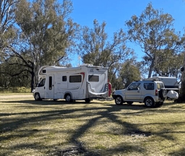 The vehicle is towing a silver Suzuki Jimny with Queensland Registration 074MF3.