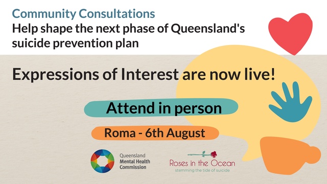 Roses in the Ocean is coming to Roma on the 6th of August to hold a community consultation with locals to help shape the next phase of Queensland's suicide prevention plan.